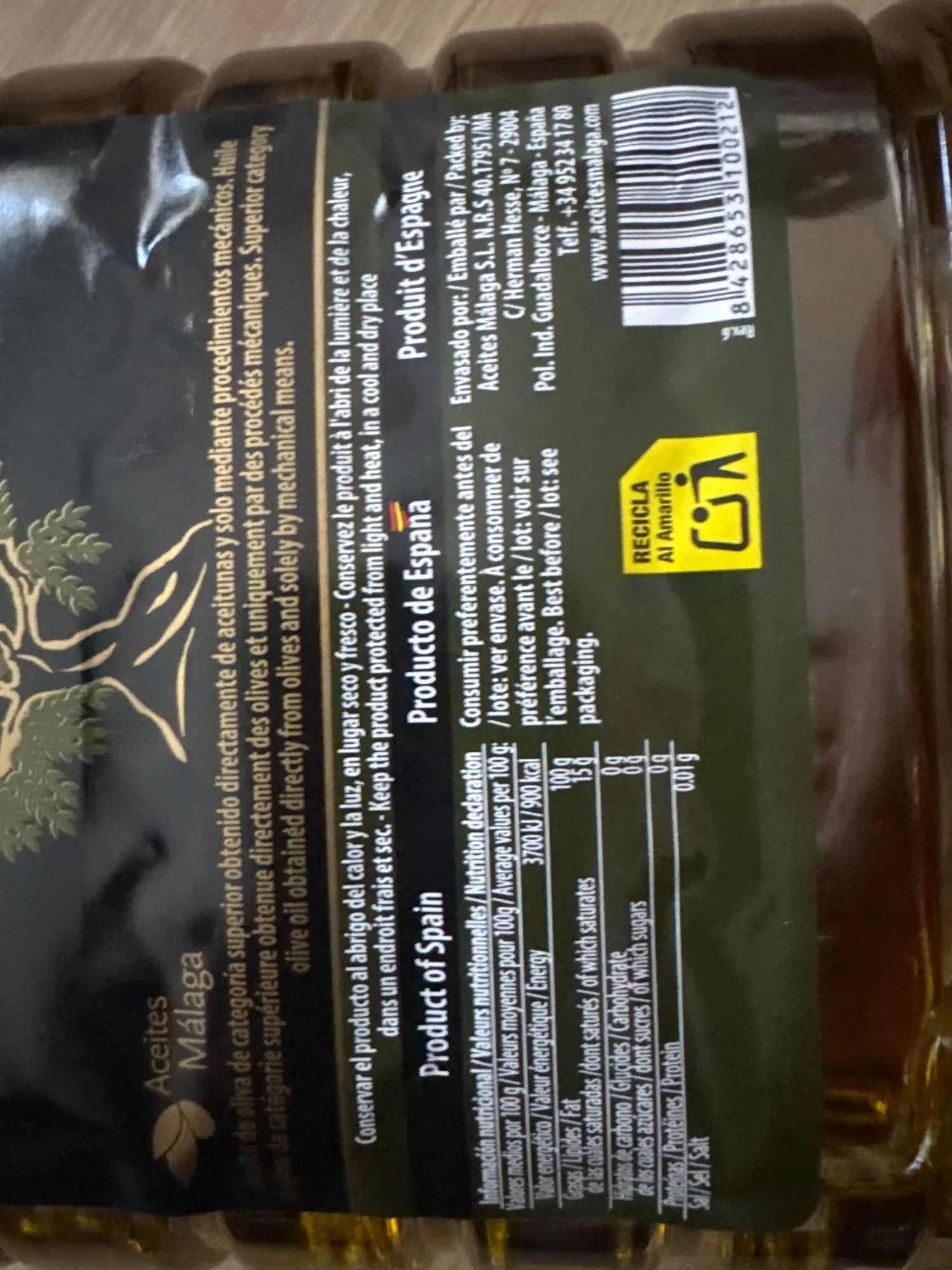 Aceite de oliva virgen extra La Flor de Málaga 3 x 5 litros